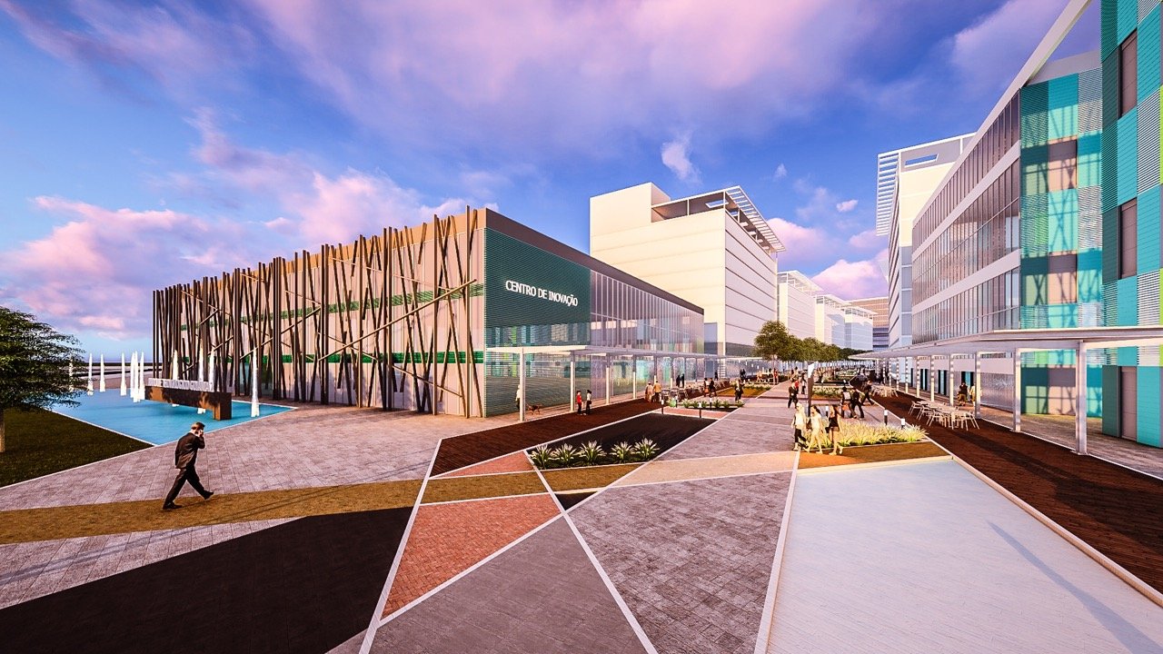 Com implantação por fases, iniciando pelo extremo sul junto à infraestrutura já existente, o Parque se estrutura como um projeto vivo, adaptável às demandas de mercado, com potencial para receber também usos residenciais estratégicos, reforçando seu caráter de bairro misto, dinâmico e inovador.