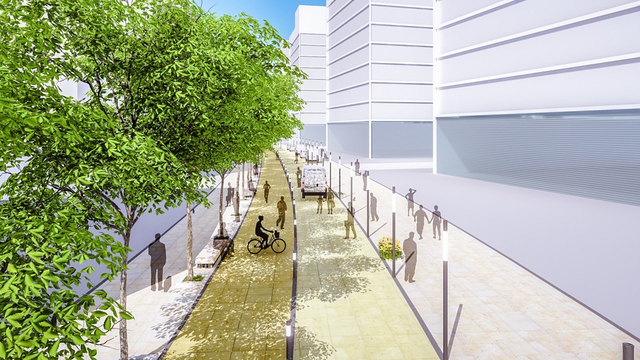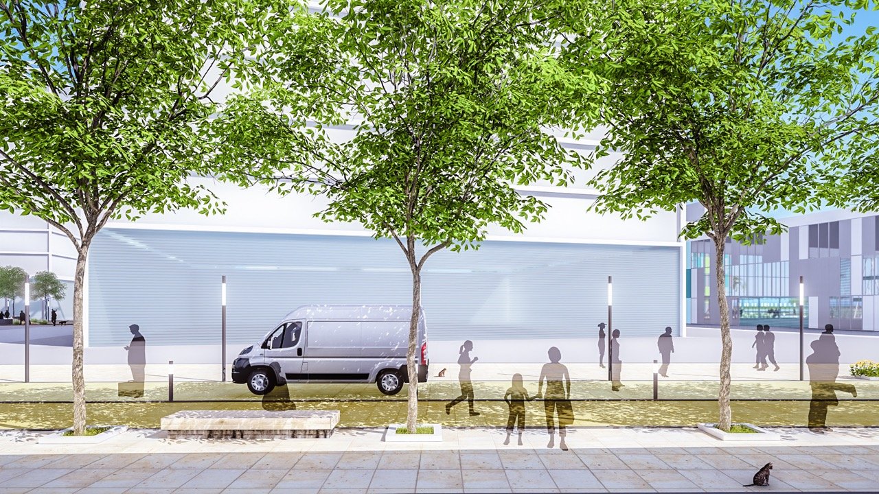 A proposta valoriza ainda soluções sustentáveis, como uso de materiais permeáveis, espécies vegetais nativas, espelhos d’água, sombreamento inteligente e estratégias bioclimáticas, reforçando o compromisso com um urbanismo resiliente e sensorialmente qualificado.