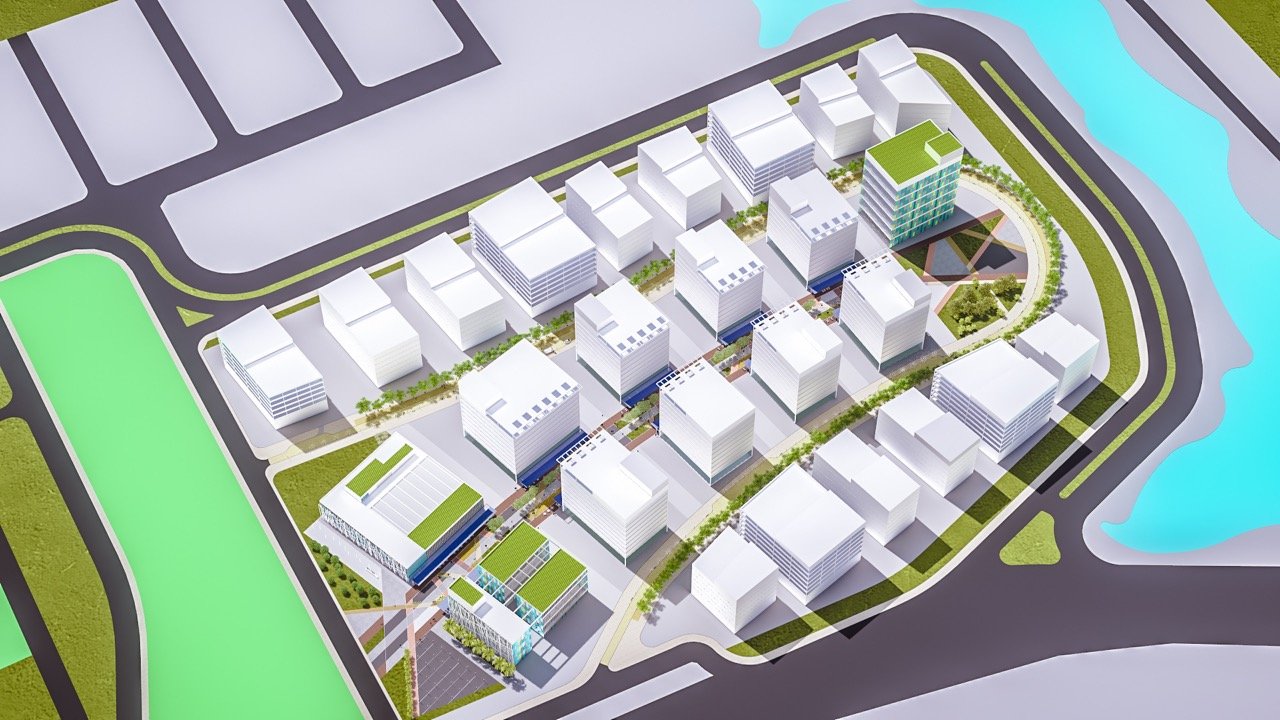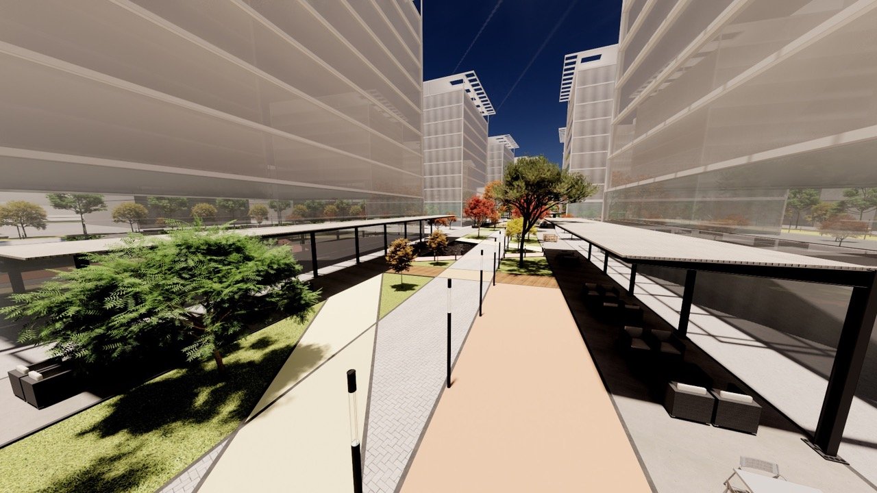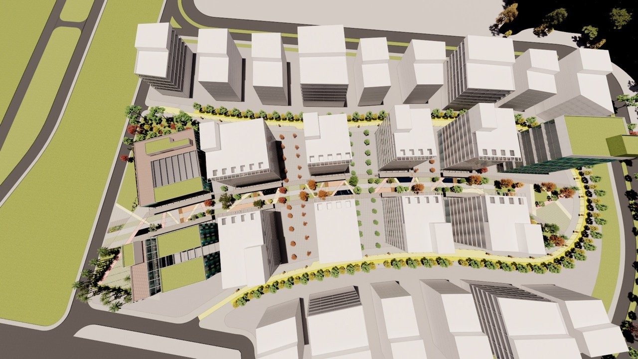 Desenvolvido com base em estudos regionais e ambientais, o plano urbanístico propõe espaços empresariais flexíveis e integrados, distribuídos ao longo de um boulevard central de serviços, gastronomia e lazer, que atrai tanto os usuários internos quanto o público do entorno, promovendo vida urbana ativa e conectada.